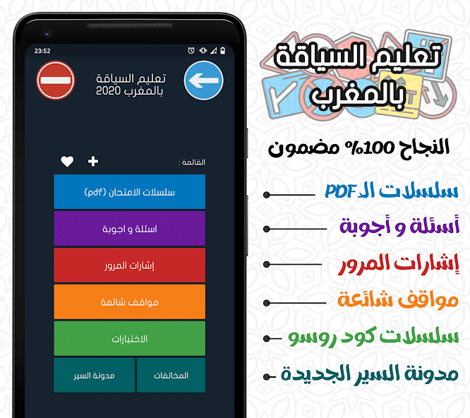 تحميل تطبيق تعليم السياقة بالمغرب حيث يساعدك هذا التطبيق علي تعليم السياقة من خلال توفيره دروس مختلفة تتنوع ما بين دروس بالصوت أوبالصورة، وبإستخدامك لهذا التطبيق ستتمكن من تعلم السياقة بالمغرب وقد تم تصميم هذا التطبيق من أجل مساعدة السائقين وكل من هو مقبل علي إجتياز إختبار رخصة السياقة مع توفيره لكافة الإجابات الصحيحة التي تحتاجها دون الحاجة إلي إستخدام الإنترنت، أي أنك ستحمل داخل هاتفك مدرسة تعليم سياقة متنقلة.